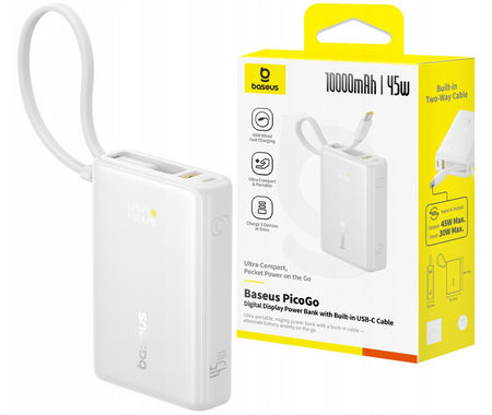 Powerbank Baseus PicoGo Digital Display 10000mAh 45W USB-A / 2x USB-C Biały